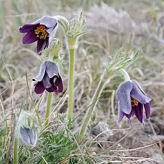 ![]() Pulsatilla vulgaris var. costeana una de las especies endémicas de Grands Causses. | ||