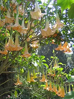 - El nivel de las plantas con flores: este piso intermedio está dedicado a los arbustos de flor: daturas, cuyas pesadas flores de cálices colgantes aparecen en los grabados, adelfas, hibiscos, jazmínes, rosas, madreselva, limoneros o naranjos. Los arbustos son elegidos por su exuberante floración y por su fragancia, que atrae a los pájaros y las mariposas.