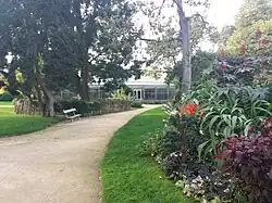 - Invernadero tropical con 200 m², reconstruido en 1994, alberga 150 plantas incluyendo bromelias, cactus, y varias especies de orquídeas.[1]