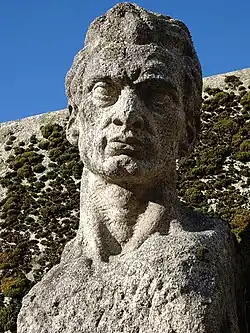 El busto se apoya sobre un pedestal de granito de la Escuela de Canteros de Poyo,[18] que muestra en su base la inscripción "Galicia".
