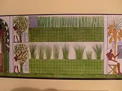El loto blanco y el loto azul se cultivaban con fines decorativos y para su uso en las ceremonias religiosas. Se sabe que el papiro se plantaba en Deir el-Bahari.[11] Más tarde, durante la ocupación persa, se introdujo el loto rosa en Egipto.