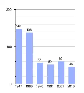 | Gráfica de evolución demográfica de Jarilla[1] entre 1947 y 2010 |