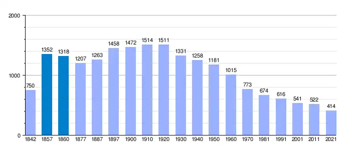 | Gráfica de evolución demográfica de Jarque[9] entre 1842 y 2021 |