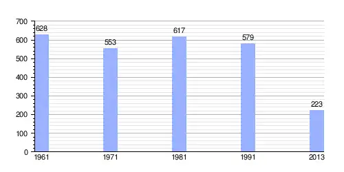| Gráfica de evolución demográfica de Jasenica entre 1961 y 2013 |