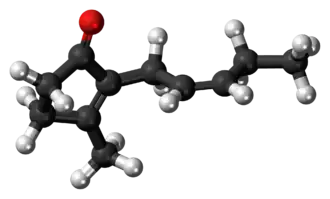 La jasmona es un compuesto orgánico, que es una parte volátil del aceite de las flores de jazmín. Es un líquido incoloro a amarillo pálido. La jasmona puede existir en dos formas isoméricas con diferente geometría alrededor del doble enlace pentenilo, cis-jasmona y trans-jasmon. El extracto natural contiene solo la forma cis, mientras que el material sintético suele ser una mezcla de ambos, predominando la forma cis. Ambas formas tienen olores y propiedades químicas similares. Su estructura fue deducida por Lavoslav Ružička.[2]