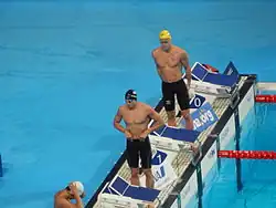 Jayden Hadler, con gorro amarillo, en el Campeonato Mundial de Natación de 2015 | |||||||||||||||||