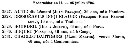- Picard, Auguste (1911) - "Liste des victimes du Tribunal révolutionnaire à Paris". Paris: Librairie Alphonse Picard et fils. Copy at Gallica.