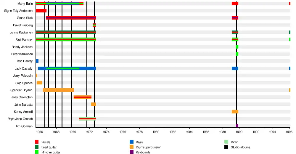 - Marty Balin - voz, guitarra (1965-1971, 1989, murió en 2018)