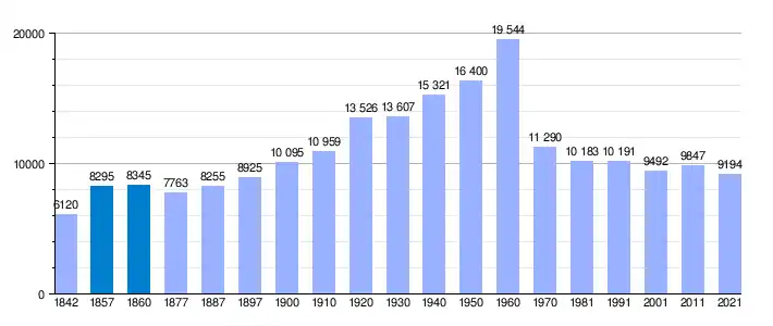 | Gráfica de evolución demográfica de Jerez de los Caballeros[11] entre 1842 y 2021 |