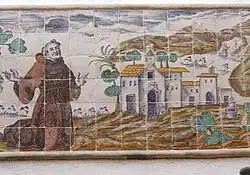 En la actualidad, los paneles cerámicos, intensamente restaurados, han sido emplazados en el claustro bajo y en el patio. Uno representa al Pare Pere arrodillado ante la imagen de Jesús Pobre. En otro, el franciscano con los brazos abiertos frente a su convento y, en una segunda escena, a Fray Pere orando a Dios en el Montgó.