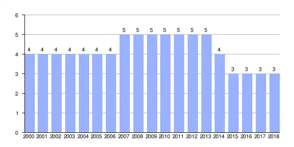 | Gráfica de evolución demográfica de Jesteira entre 2000 y 2018 |