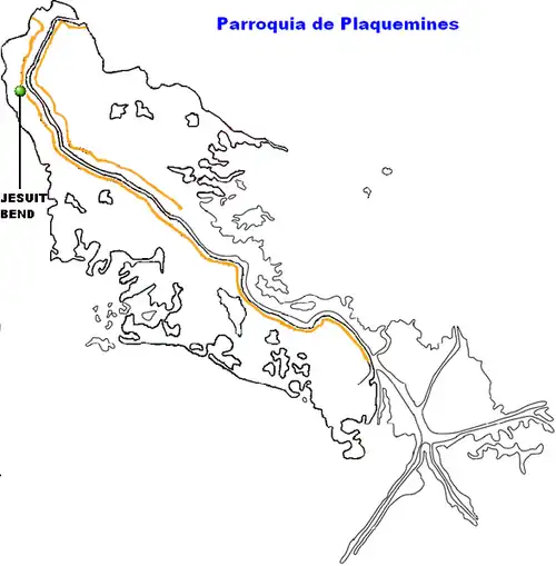 - ↑ «Jesuit Bend, Louisiana LA Community Profile / Plaquemines Parish, LA Data». Consultado el 2009.