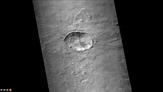 ![]() El cráter visto desde órbita por la Mars Reconnaissance Orbiter | ||