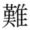| - | 難 | 96E3 | ナン | かた.い -がた.い むずか.しい むづか.しい むつか.しい -にく.い |