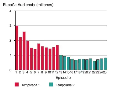 | Temporada | Programas | Estreno | Final | Audiencia media | ||