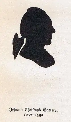 - ↑ Johann Christoph Gatterer, der Begründer der wissenschaftlichen Genealogie. bearbeitet von Wolfgang Ollrog. In: Archiv für Sippenforschung. Heft 81/82, 47. Jahrgang, Februar 1981, C. A. Starke Verlag, Limburg 1981.