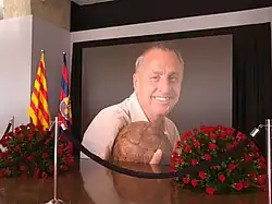Hendrik Johannes Cruijff (Ámsterdam, 25 de abril de 1947-Barcelona, 24 de marzo de 2016),[6] conocido internacionalmente como Johan Cruyff, fue un futbolista y entrenador neerlandés.[7] Es considerado como una de las figuras más influyentes en la historia del fútbol, por su legado como jugador y entrenador.[8][9]