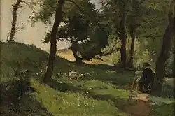 Johannes Evert Hendrik Akkeringa (Blinjoe, Indias Orientales Holandesas, 17 de enero de 1861-Amersfoort, 12 de abril de 1942) perteneció a la segunda generación de pintores de la Escuela de La Haya. Akkeringa era más conocido por sus pinturas y acuarelas de escenas de playa con niños y mujeres jugando, remendando redes y representaciones de 'horas de té' íntimas con figuras que conversan en un entorno frondoso y destaca por sus portentosos ramos de flores.