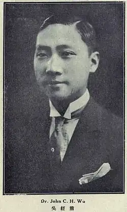 John Ching Hsiung Wu [1] (también John CH Wu ; chino tradicional : 吳經熊; pinyin : Wu Jingxiong ) (nacido el 28 de marzo de 1899, Ningbo - 6 de febrero de 1986) fue un jurista y autor chino. Escribió obras en chino, inglés, francés y alemán sobre espiritualidad cristiana, literatura china (incluida una traducción del Tao Te Ching ) y temas legales.