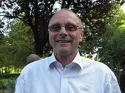 ![]() Dr. John O'Sullivan, 29 de mayo de 2013, cerca de Hoogeveen, Países Bajos, con motivo del coloquio "Reinventando la radioastronomía" en honor de Arnold van Ardenne. | ||