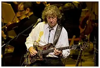 ![]() El guitarrista John Parsons en plena actuación. | ||