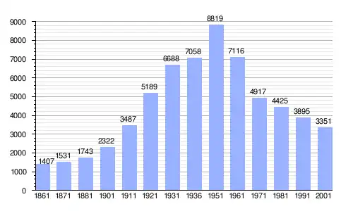 | Gráfica de evolución demográfica de Jolanda di Savoia entre 1861 y 2001 |
