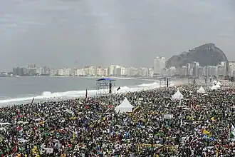 ![]() La multitud de jóvenes abarrotó la playa de Copacabana durante la celebración de la misa de clausura de la JMJ 2013. | |||||