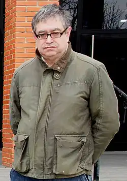![]() José Ángel Lema Pueyo frente a la Facultad de Letras de Álava en el 2016 | ||