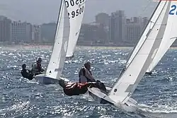 ![]() García de Soto con César Arrarte de tripulante en el Campeonato Sur de Europa de Snipe de 2014 | ||