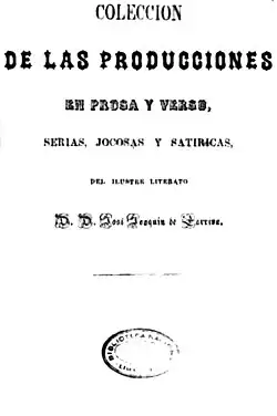 El coronel Manuel de Odriozola compiló las «producciones en prosa y verso, serias, jocosas y satíricas» de José Joaquín de Larriva en el segundo tomo de su Colección de documentos literarios del Perú, pp. 343-384 (Lima, 1864).[11]
