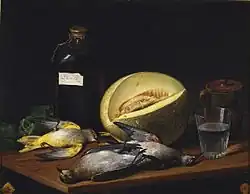 - ↑ Pérez Sánchez, A. E., Pintura española de bodegones y floreros de 1600 a Goya, catálogo de la exposición, Madrid, Museo del Prado, 1983, ISBN 84-500-9335-X , pág. 175.