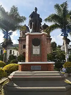 Monumento a José María Córdova en su pueblo natal, donde se lee Cordoba.