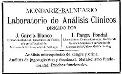11. El Dr. D. José García Blanco, catedrático de Fisiología Humana en la Universidad de Santiago y director del Instituto de Nutrición del Establecimiento pasaba consulta en los altos de La Baranda como especialista en enfermedades de la nutrición y además se encargaba de realizar pruebas complementarias funcionales de nutrición y Rayos X...[17]