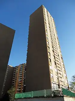- Grupo Residencial de 286 Viviendas Hábitat Don 2000. Calle Joaquín Aznar Molina, 1, Zaragoza. Proyectado en 1967. Finalizado en 1973 Colaborador: José Miguel de Yarza Nordmark. Tiene una altura de 57 metros.[1]