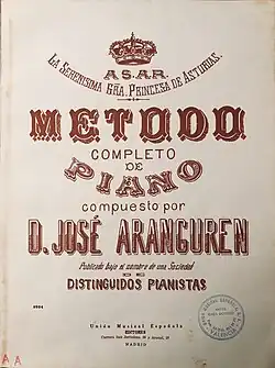 - Método completo de piano (1855), dedicado a la entonces Princesa de Asturias, S.A.R. Isabel de Borbón y Borbón.