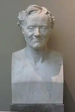 - Retrato de Dominique Vivant Denon (1747 - 1825) busto como hermès, mármol, París, museo del Louvre Guyena en Burdeos ", figurilla (esbozo), barro cocido, Burdeos, museo de Aquitania