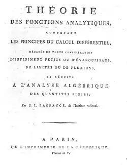 Este trabajo es la extensión de una idea contenida en un artículo que había enviado a Berlín en 1772. Un método algo similar se había usado previamente por John Landen en el Análisis residual, publicado en Londres en 1758. Lagrange creyó que podía librarse así de las dificultades por el uso de cantidades infinitamente grandes e infinitamente pequeñas, que los filósofos objetaron en el tratamiento usual del cálculo diferencial.