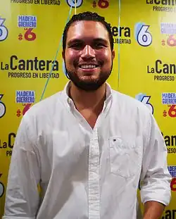 En 2013 renunció a su empleo dentro del Municipio de Guayaquil para lanzarse a la política, como candidato a Concejal de la ciudad de Guayaquil del distrito 2 por la alianza del PSC-Madera de Guerrero. Ganó su puesto en las elecciones municipales de Guayaquil de 2014, y como tal, promueve proyectos para la juventud, como "Oye Guayaquil" y "Emprende Guayaquil",[4][5] cambiar el nombre del Puente de Zigzag de la ciudad de Guayaquil a "Paseo de la Juventud", entre otros.[3] Fundó la Escuela de Liderazgo y Formación Política denominada 'La Cantera'.[6]