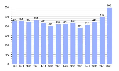 | Gráfica de evolución demográfica de Jovençan entre 1861 y 2001 |