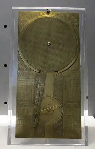 Fue utilizado por Galileo Galilei para determinar los períodos orbitales de las lunas de Júpiter y calcular los tiempos de sus eclipses. El instrumento lleva grabadas tablas que muestran los movimientos medios de cada una de las cuatro lunas. Dos discos conectados de diferentes diámetros giran mediante una varilla móvil. Se utilizan para crear una "vista desde el Sol" de los movimientos de las lunas de Júpiter observados desde la Tierra (movimientos que parecen irregulares debido a los movimientos relativos de la Tierra y de Júpiter de acuerdo con la teoría heliocéntrica).