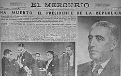- Imagen de El Mercurio del 27 de junio de 1946 "Ha muerto el Presidente de la República" (enlace roto disponible en Internet Archive; véase el historial, la primera versión y la última).