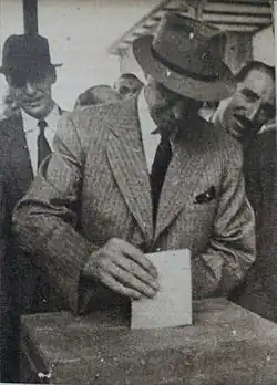 - ↑ José Díaz Nieva,"La elección presidencial de 1942. J. A. Ríos y la continuidad de la era radical", en San Francisco, Alejandro y Ángel Soto (editores), Camino a la Moneda. Las elecciones presidenciales en la historia de Chile 1920-2000. Ediciones Instituto de Historia, Pontifica Universidad Católica de Chile-Centro de Estudios Bicentenario, 2005, pp. 183.
