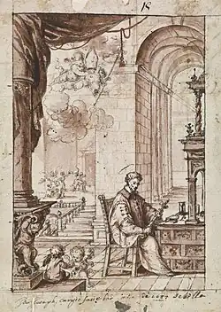 Un dibujo con San Eloy, orfebre, firmado y fechado en 1687 (Gabinete de Dibujos, Estampas y Fotografías del Museo del Prado) reúne las mismas características al presentar al santo acompañado por ángeles ante una gran perspectiva arquitectónica.[4] En 1693 participó en la policromía de las imágenes de la cofradía del Santo Entierro de Sevilla y tres años más tarde colaboró en la decoración del túmulo que se construyó en honor de Mariana de Austria, para el que pintó dieciséis escudos de armas.[5]