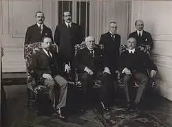 El Presidente Sanfuentes junto a sus Ministros de Estado. 12 de octubre de 1917. Eliodoro Yáñez (sentado a la derecha), ministro del Interior.