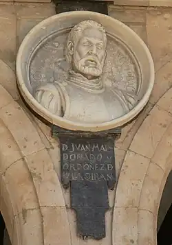 La efigie de Juan Maldonado se encuentra en un medallón, en la Plaza Mayor de Salamanca (España), realizado por el escultor salmantino Juan Pérez González. Fue donado en 1961 por el Concejo Municipal del Distrito San Cristóbal (Venezuela) a la ciudad de Salamanca. En la actualidad, en la plaza mayor de la ciudad de San Cristóbal (Plaza Capitán Juan Maldonado), se levanta una estatua ecuestre, obra del escultor Arturo Rus Aguilera, inaugurada el 20 de enero de 1977 por el presidente de la Municipalidad de San Cristóbal, Gerson Rodríguez Durán.