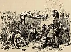En 1528, Juan Ortiz estaba en un barco buscando en la Bahía de Tampa cualquier señal de la expedición de Narváez que había aterrizado allí el año anterior. Ortiz y uno o más compañeros fueron atraídos a la costa por algunas personas que tenían lo que los españoles pensaban que era un mensaje de Narváez. (Los españoles no conocerían el destino de la expedición de Narváez por otros ocho años, hasta que Álvar Núñez Cabeza de Vaca y otros tres sobrevivientes llegaran a un puesto avanzado español en el noroeste de Nueva España). Ortiz y sus compañeros fueron capturados por la gente en la costa y abandonados. por sus compañeros de barco. Todos menos Ortiz fueron asesinados mientras se resistían a la captura o poco después de ser llevados a la ciudad de Uzita.[2][3] Después de que Ortiz fue llevado a la ciudad de Uzita (según lo dicho por el Señor de Elvas), o algún tiempo después de que Ortiz se salvó de la ejecución al recibir un disparo con flechas (según el Inca), el jefe ordenó que atara a Ortiz a un estante sobre un fuego. La hija del jefe le rogó al jefe que perdonara a Ortiz, argumentando que Ortiz no era un peligro para el jefe.[4]