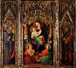 Activo en la diócesis de Sigüenza en el segundo cuarto del siglo XV, Juan de Sevilla habría sido el autor del retablo de San Juan el Bautista y santa Catalina, encargado por Gastón de la Cerda, IV conde de Medinaceli o algún miembro de la familia de los infantes de la Cerda para la capilla de Santa Catalina de la catedral de Sigüenza. El retablo estuvo formado originalmente por banco y diez tablas, repartidas actualmente entre el Museo del Prado, propietario de la tabla central con los santos titulares y cuatro de las tablas laterales, y la propia catedral seguntina, aunque ahora en ubicación distinta del emplazamiento original en la capilla de Santa Catalina o de los Arce para la que se pintó.[1][2] Su autor, a quien Chandler R. Post denominó Maestro de Sigüenza, fue identificado por José Gudiol Ricart con el autor de un tríptico de la Virgen con el Niño y ángeles músicos firmado Joh[an]n[e]s Hispalensis, con San Pedro y San Pablo en las tablas laterales. Este tríptico, propiedad del Museo Lázaro Galdiano, fue adquirido por José Lázaro en el comercio zaragozano, aunque la firma podría indicar la procedencia andaluza del pintor, al que también Gudiol Ricart identificó con un Juan de Peralta que firmó Johns Peraltis un San Andrés de colección privada parisina.[3] El anónimo maestro de Sigüenza, Juan de Sevilla y Juan de Peralta serían de este modo un mismo pintor, de nombre Juan de Peralta y originario de Sevilla.