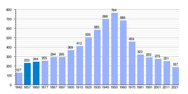 | Gráfica de evolución demográfica de Juarros de Voltoya[2] entre 1842 y 2021 |