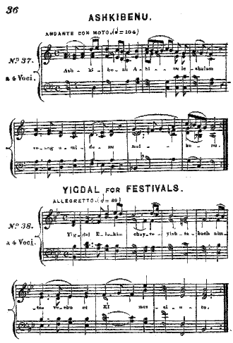 - ↑ Tradicionalmente, se le pide a un cantor de audición en una sinagoga asquenazí que cante Kol Nidre, una pieza solista que exige gran destreza vocal, rango y expresión emocional, mientras que en una sinagoga sefardí se le pide que cante Bammeh madlikin, un recitativo de una canción de la llanura que exige precisión más que cualquier otra cosa.