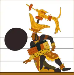 - Dualidad cosmológica. El juego se ve como una lucha entre el día y la noche,[66] y/o una batalla entre la vida y el inframundo.[67] Los campos de juego fueron considerados portales al inframundo y se construyeron en lugares clave dentro de los recintos ceremoniales centrales. Participar en el juego de pelota representaba envolvimiento en el mantenimiento del orden cósmico del universo y la regeneración ritual de la vida.